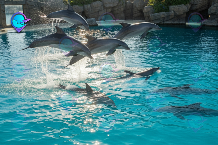 🎭 نمایشها: اجرای دلفیناریوم توسط مربیان حرفهای + حرکات نمایشی دلفینها با توپ و حلقه